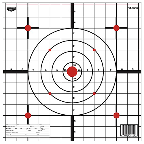 Eze-Scorer Paper Targets offer simple and effective target shooting to sight-in your firearms. They are economical and great for indoor or outdoor ranges. This target features a sight-in grid with a center bull’s-eye and a small crosshair in each corner. It comes in a pack of 13.