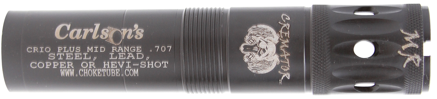 Carlson’s Cremator Choke Tubes feature our new Triple Shot Technology and is offered in close mid and long range constrictions. TST is a series of three graduated rings in the taper section of the choke tube, that allow a more gradual transition from the shotgun bore to the final constriction. The Cremator offers reduced pellet deformation, less flyers, more dense patterns, wrench-less installation, quick removal and muzzle protection. Made in the USA. *NOTE- Optima HP and Remington Pro Bore Long Range cannot be used with any steel shot larger than #2.
