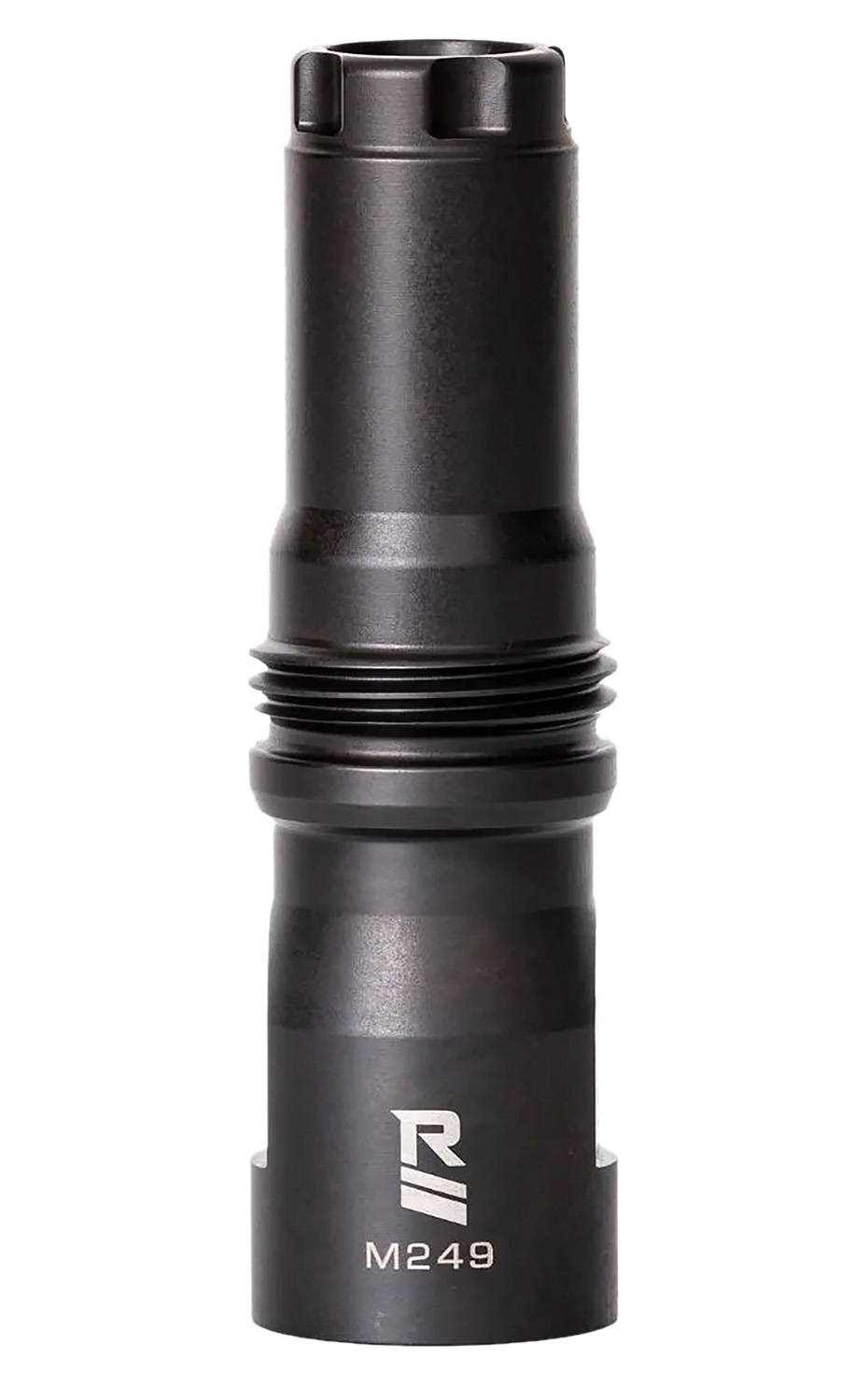 The M249 9/16x24LH Muzzle Device features Rugged Suppressors’ Dual Taper Locking System and is compatible with Rugged Suppressors Surge762, Razor762, and Micro30.
